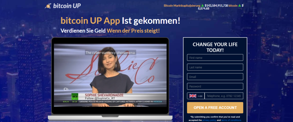 Bitcoin Up ist ein ein utomatische t rading s oftware dass s kann s der Markt mit Hilfe der künstlichen Intelligenz und nimmt eine systematische Entscheidung zum Handel. Es beinhaltet im Wesentlichen die Entscheidung, dem Benutzer maximale Gewinne bei minimalem Risiko zu bieten.