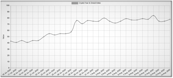 Investoren zeigen immer höhere Emotionen, die der Crypto Fear & Greed Index als Gier oder absolutes Verlangen liest. Während dieser Stimmungsindikator im Juli extreme Angst in den Emotionen der Anleger anzeigt, da sie Angst hatten und die Bitcoin-Preise (BTC) unter den Bereich von 10.000 USD fallen würden. Derzeit bewegt sich der Preis für Bitcoin (BTC) im Bereich der Stärkung zwischen 11.200 und 11.800 USD.