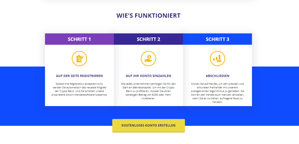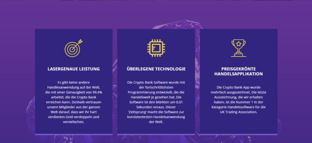 Die Crypto Bank bietet ein fortschrittliches programmiertes Einkommensgenerierungssystem, das behauptet, in kürzerer Zeitspanne enorme Gewinne zu erzielen.