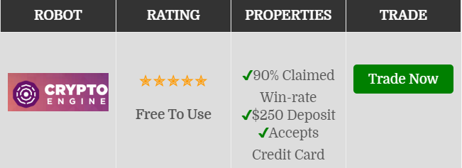 Die Software hat eine Gewinnrate von 90%, was bedeutet, dass die Robotervorhersage 9-mal von 10 Trades richtig ist. Die Crypto Engine-Roboter sind schnell und in der Lage, die Märkte mit Hilfe fortschrittlicher Technologie und intelligenter Algorithmen genau für die Ausführung des Handels zu analysieren.