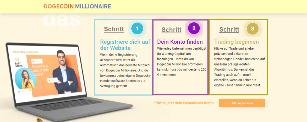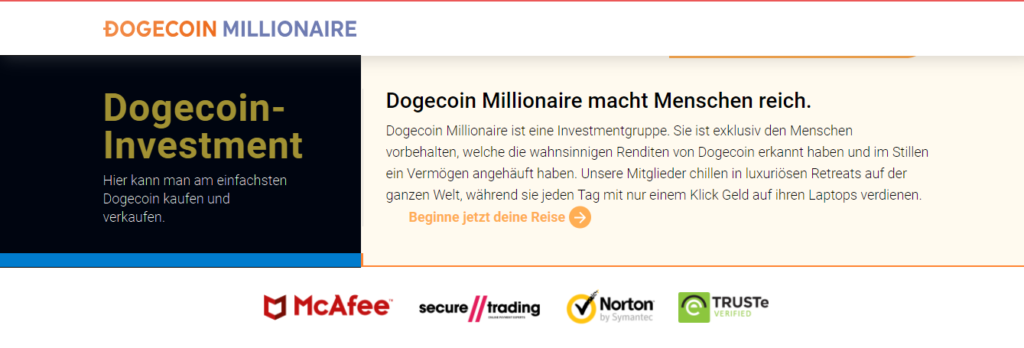 Dies sind alle Behauptungen, die von Benutzern online gemacht werden, und wir werden unten in dieser Dogecoin Millionaire-Rezension überprüft. Unser Team überprüft diesen automatisierten Roboter, um die Legitimität dieses Handelssystems zu überprüfen. Lesen Sie diese Rezension bis zum Ende, um alles über diesen Roboter zu erfahren.