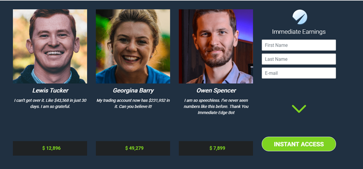 Laut unserer Bewertung von Immediate Edge behauptet diese App, dass die Plattform sehr sicher und profitabel ist, und es gibt mehrere Testimonials und Benutzerbewertungen auf ihrer Website von Händlern, die behaupten, dass sie auf dieser Plattform mehr Gewinn gemacht haben.