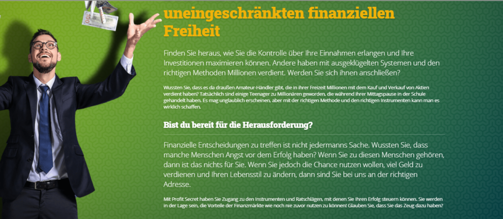 - Täglicher Gewinn von $1.500 mit Profit Secret.